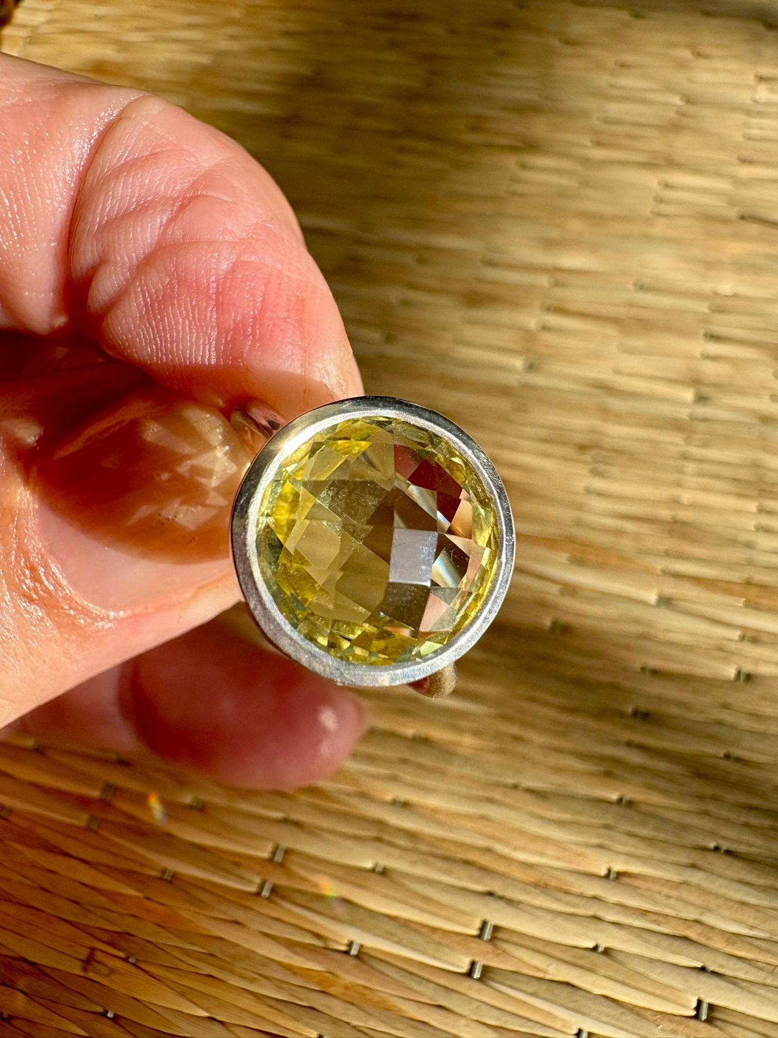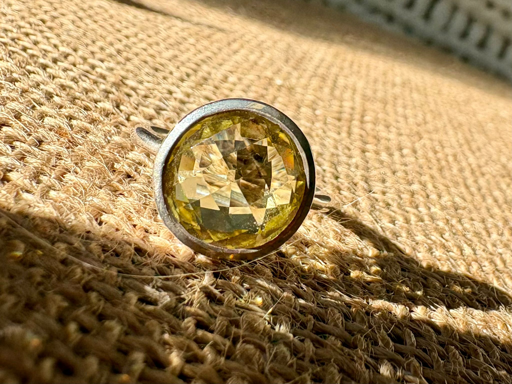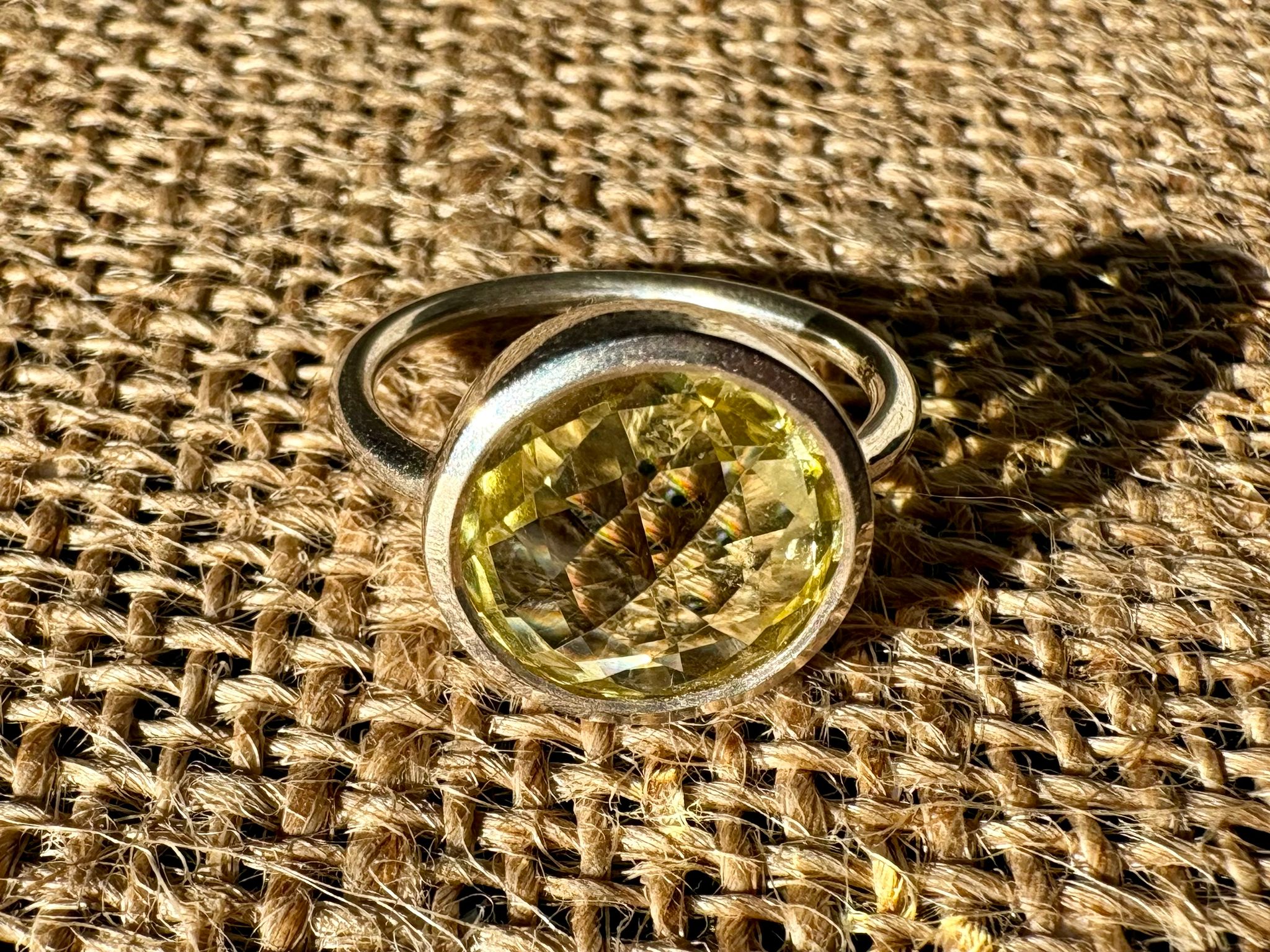 Bague en argent avec Citrine ronde facettée. Une pierre solaire qui stimule la confiance, l’abondance et la joie de vivre.