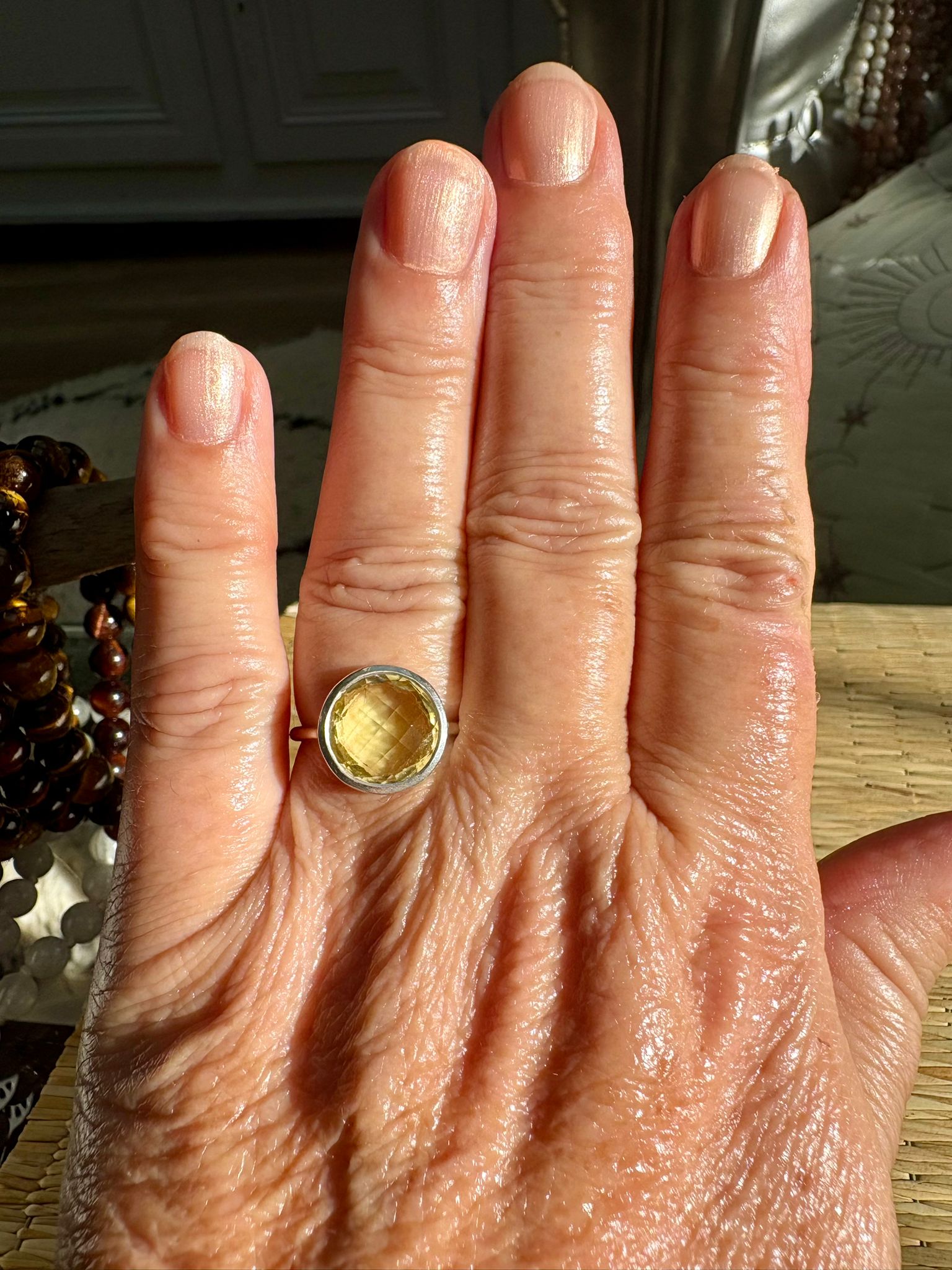 Chaque bague est fabriquée à la main. Les nuances naturelles de la Citrine rendent chaque pièce unique.