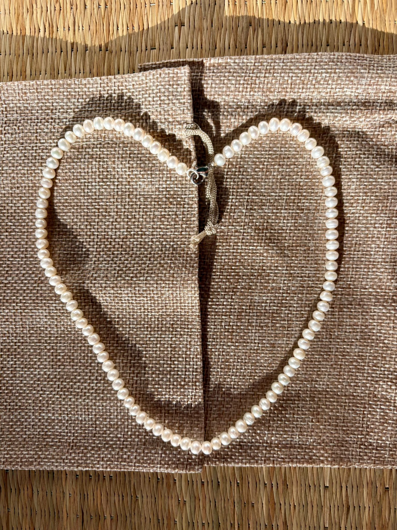 Le Collier Perles Pureté est composé de perles d’eau douce symboles de pureté, de foi et de clarté. Porté en ras de cou, il apaise les émotions et diffuse une énergie douce et lumineuse au quotidien.