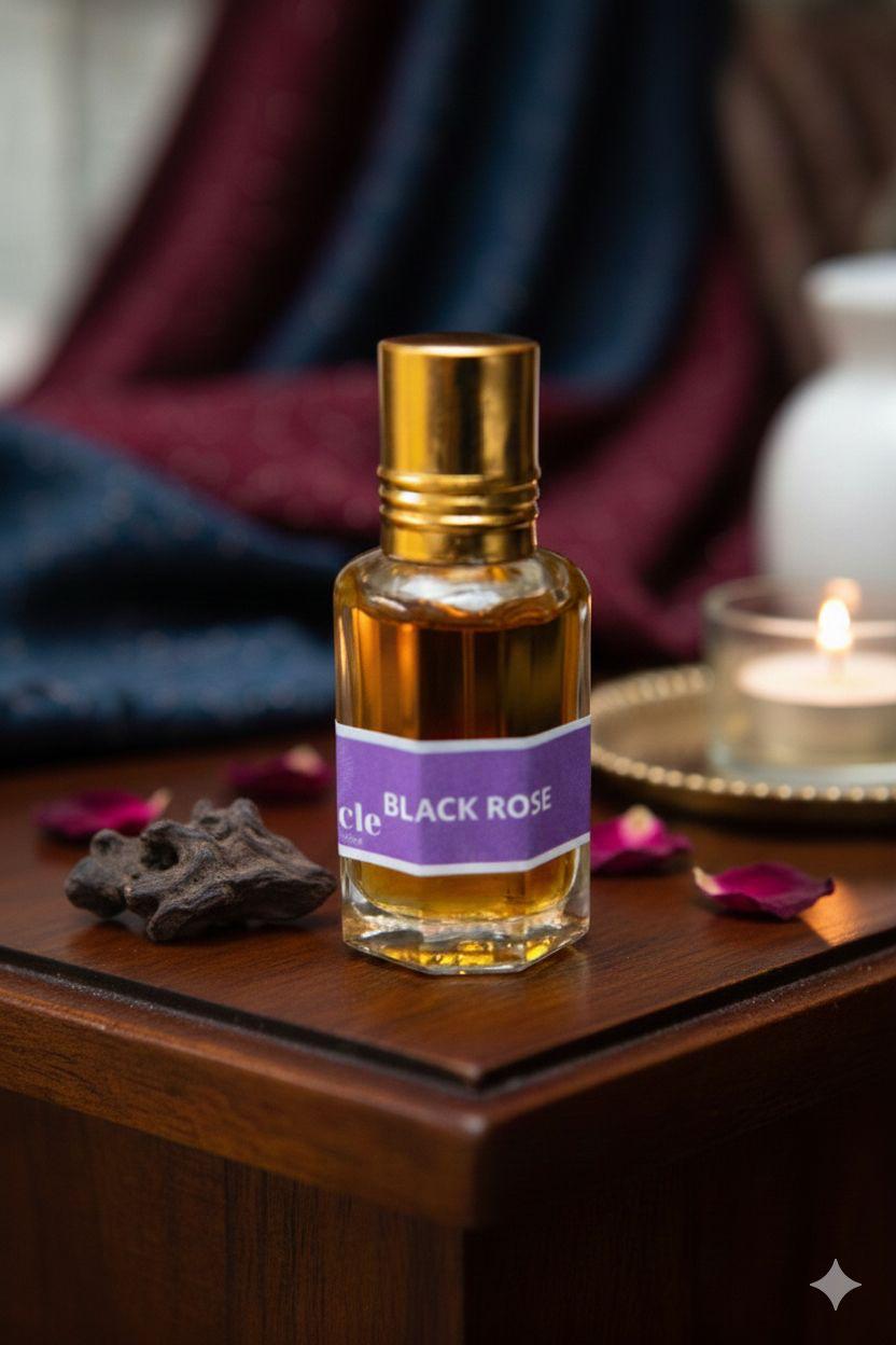 Huile aromatique indienne Black Rose 12 ml. Parfum pur, profond et protecteur. Idéal pour la méditation, les bijoux spirituels et la purification énergétique.